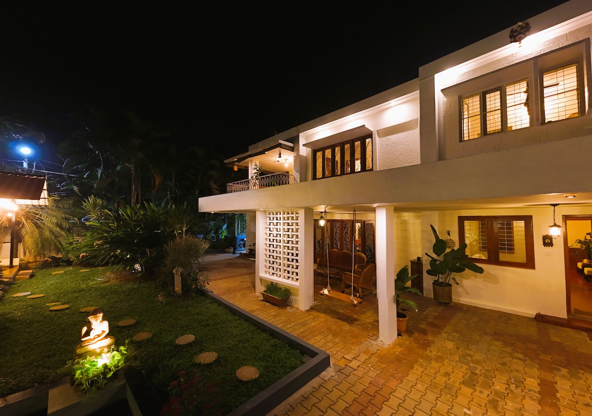 • ¡Una escapada familiar perfecta dentro de los límites de la ciudad! A solo 14 km de Hebbal. • A 18 km del aeropuerto. • Cerca de Manipal y la universidad NITTE Yelahanka. • Está ubicada en un ambiente de pueblo con un hermoso paisaje y una casa con mucha luz natural. • Es un buen lugar para una estancia tranquila, pequeñas reuniones, cumpleaños, fiestas de aniversario y sesiones de fotos previas a la boda. • Nuestra propiedad tiene un muro compuesto en los cuatro lados con un circuito cerrado de televisión, un hermoso cenador en el jardín para relajarse y fiestas.