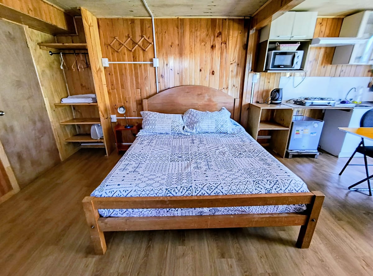 Hermosa cabaña nueva ubicada en pleno centro de Castro en la capital de Chiloé. Espacio acogedor con entrada independiente, se encuentra totalmente equipada a solo 1 cuadra de supermercados, terminales de buses, plaza, iglesia, hospital, estadio, gimnasio y principales arterias de la ciudad. Cuenta con una habitación con cama matrimonial, cama extra en altillo y 1 baño. Ideal para parejas o viajes de trabajo. Posee calefacción, frigobar y cocina.