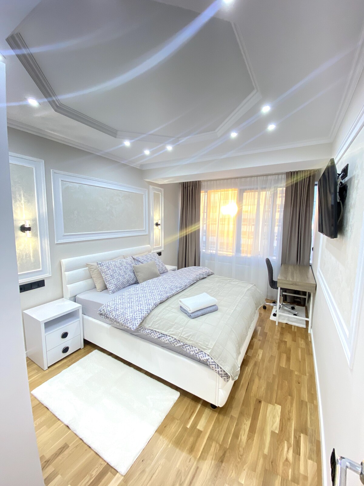 El apartamento está situado en un complejo residencial de élite, en la mejor zona verde de la ciudad, con un patio cerrado y vigilado y un gran parque infantil. En el complejo residencial hay un Kaufland, su aparcamiento de pago está a su disposición 24/24, así como un salón de belleza, una tienda de juguetes, una barbería y una notaría. Un buen enlace de transporte permite llegar fácilmente a todas las zonas de la ciudad en transporte público. El aeropuerto y la estación de tren están a 15 minutos en taxi.