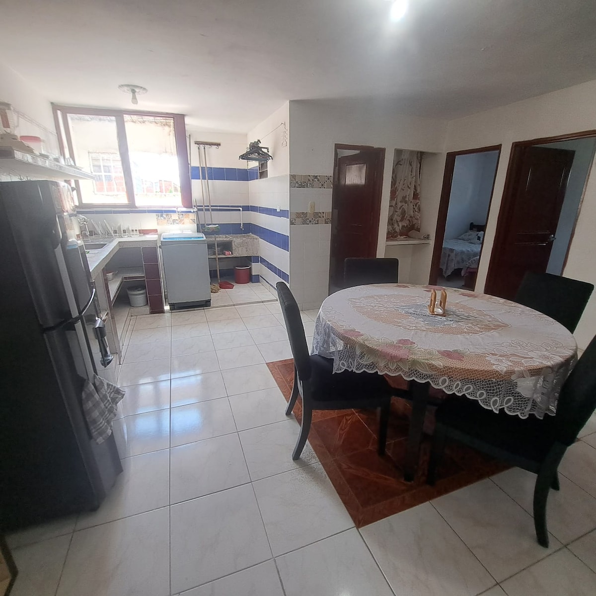 Disfruta de la sencillez de este alojamiento tranquilo y céntrico. con dos habitaciones y 2 baños alcoba principal cama doble, la otra cama.doble y cama sencilla, agua caliente, aire, terraza con barbikiu y wifi