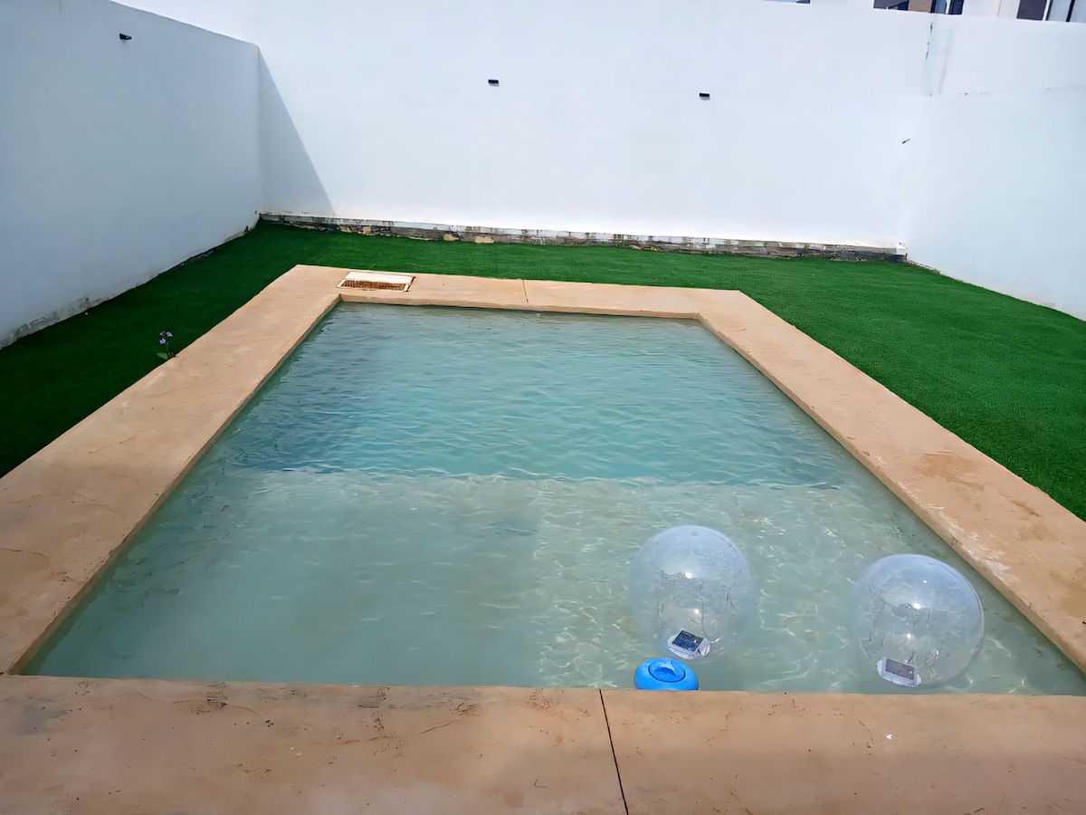 Linda casa con 3 habitaciones, la principal con cama king size, hamaca y baño con jacuzzi, segunda recamara con cama matrimonial y hamaca, tercera recamara con dos camas individuales y hamaca , además de sofá cama, lindo jardín con alberca y terrazas, a solo 3 calles del Gran Museo del Mundo Maya y Centro de Convenciones Siglo XXI, a 15 min. del Centro histórico y a 20 min. de la playa. ubicado en zona residencial muy segura al norte de la ciudad.
