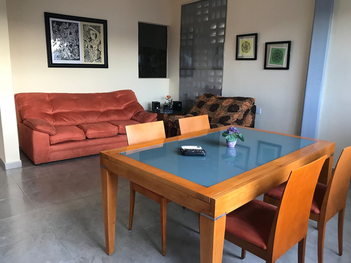 Departamento limpio y en un lugar tranquilo para dos huéspedes (máx .tres) . Cama matrimonial confortable hamaca . Cocineta, equipada con Minibar,microhondas, estufa eléctrica, cafetera, vajilla , plancha y secadora etc. A 5 min caminando de tienda de conveniencia oxo . A 10 minutos caminando al supermercado “soriana” y a 15 minutos en camión de la plaza comercial “altabrisa”.
