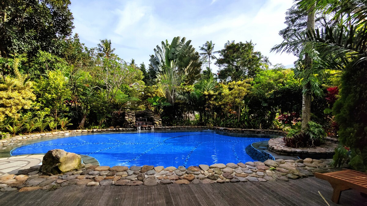 Es una villa de lujo estilo resort de Bali ubicada cerca de Bogor Taman Safari. jardín privado con piscina privada se puede utilizar de forma independiente. Es un hermoso concepto de resort verde y elegante en Bali en la región de Bogor. Recogí una parte de cada uno e imaginé el tiempo de tu descanso completo. Espero que tengas un descanso maravilloso en Art Hill Villa. Gracias.