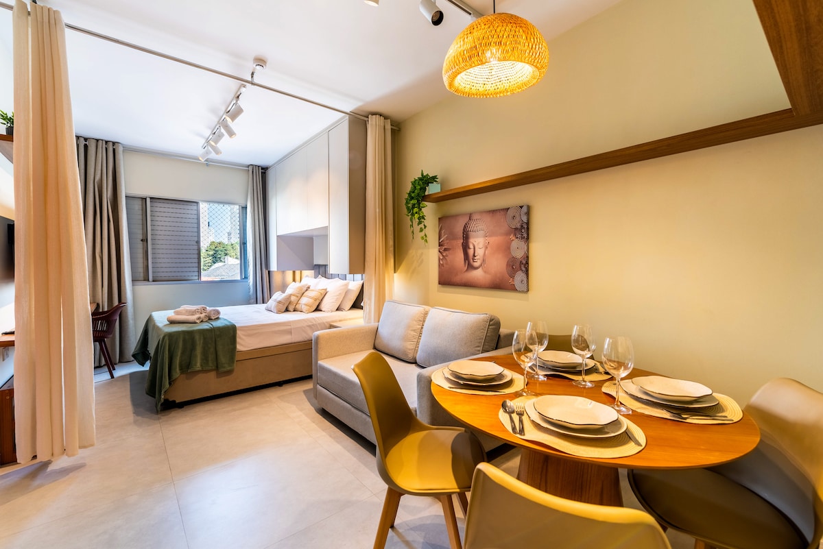 ¡Estudio Club con ocio completo, en una ubicación privilegiada en SBC! Permítase vivir esta experiencia en nuestro alojamiento de lujo, ideal para hasta 4 huéspedes. Nuestros servicios pueden atender estancias cortas o largas. Después de muchos años alojándonos en Airbnb en todo el mundo, ahora queremos ofrecer un alojamiento increíble a nuestros huéspedes. ¡Hicimos todo con mucho cuidado, PARA QUE SE SIENTAN COMO EN CASA!