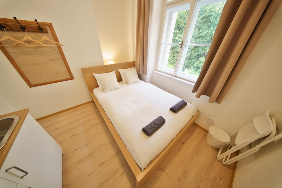 Esta habitación de 30 metros cuadrados tiene una cama doble,cocina,sofá,TV. Está ubicado en el primer piso de una villa histórica familiar con una vista increíble. El apartamento se encuentra en una zona tranquila con buenas vistas sobre Praga. Si vienes en coche, hay una plaza de estacionamiento. Hay una estación de autobuses justo al lado de la casa y la estación de tranvía más cercana está a 4 minutos. Transporte:15 minutos en transporte público al centro de la ciudad. También hay un centro comercial ubicado a 5 minutos en transporte público.