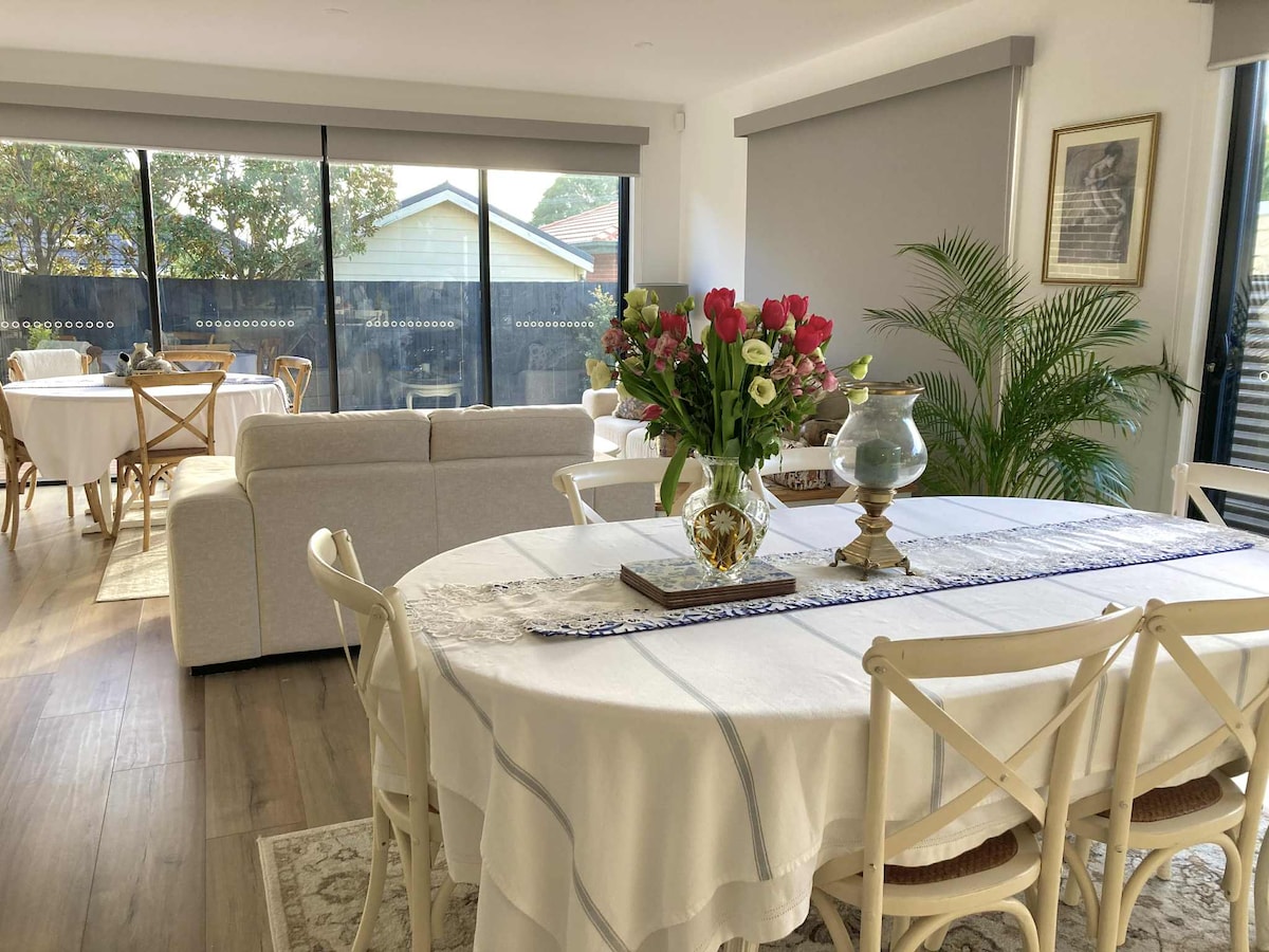 Sencillo en este lugar tranquilo y céntrico. A 20 minutos de la ciudad, cerca del transporte, cerca de los centros comerciales Chadstone y Westfield. Sumérgete en el diseño elegante y el ambiente limpio de esta casa. Desayuno continental, té, café incluidos. Barrio tranquilo con hermosos parques y carreteras suburbanas. Tienes acceso a tu baño privado, dormitorio y la zona de la mesa del comedor durante las comidas.