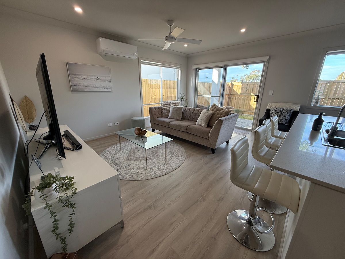 Separate self contained apartment with your own private entry, sitting area, full kitchen, bathroom, laundry, bedroom with queen size bed. Everything you need to enjoy your stay on beautiful Bribie with reverse cycle air conditioning, ceiling fans, free wi-fi and Netflix. Central location 5min walk to Bribie's major shopping centre for your groceries, beverages and restaurant options. 10min walk to picturesque Pumicestone passage, 20min walk to Sandstone Point Hotel & 10min drive to surf beach.