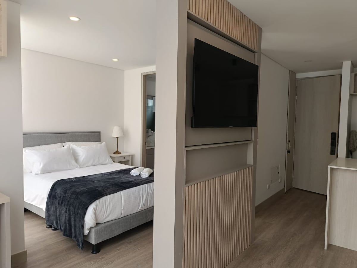 Immerse yourself in the warmth and brightness of our charming apartment, a space designed to provide you with an unforgettable stay. With a loft-style layout, this space offers everything you need for a comfortable and enjoyable stay. In addition to its coziness, the apartment is located just a few meters from prestigious hotels like the Hilton, JW Marriott, Four Seasons, right in the heart of Quinta Camacho and Zona G. Here, you’ll find a variety of restaurants, bars and cultural attractions.