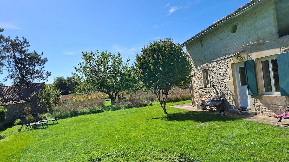 Relájate con la familia en esta bonita casa de campo con jardín privado y comedor al aire libre, enclavada en nuestra propiedad de 3 hectáreas en una zona rural serena. Date un refrescante chapuzón en la piscina en los calurosos días de verano o acomódate en los cómodos sofás con una chimenea de leña en las frescas noches de otoño. Estamos a 5 minutos de Saint Pierre de Maille y a 7 minutos del pueblo Plus Beaux de Angles sur L'Anglin. Hay piragüismo, ciclismo, escalada y senderismo disponibles cerca y una gran cantidad de pueblos históricos para explorar.