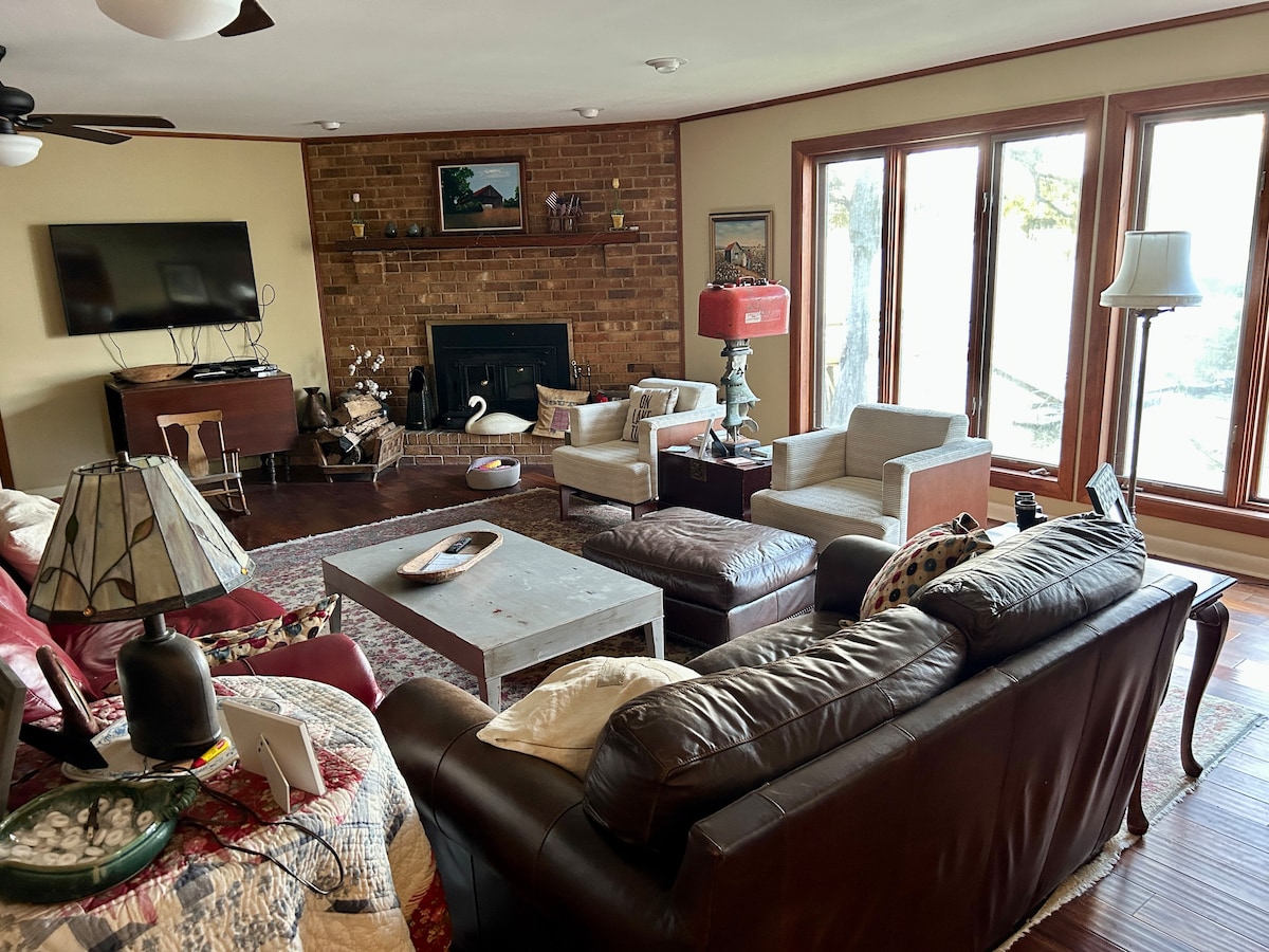 Only a mile from historic home of the blues, Clarksdale in a gated community. The cottage sits on the banks of the Sunflower River with beautiful views of rustic woods. Out your window you might see deer, fox & other wildlife. Take a walk along the riverbank. You’ll enjoy relaxing in the comfy beds, ,enjoy privacy, the piano , & closeness to all the blues music venues. It has two fire pits, an outside grill & full kitchen. Great for couples, adventurers, business travelers , musicians ,