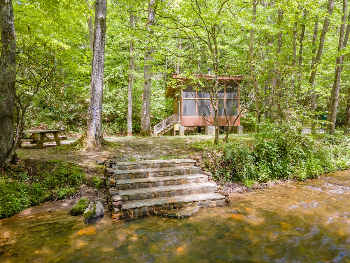 Paradise River Retreat is literally feet away from the beautiful Hiwassee River. Fishing, kayaking, tubing, or just sitting by the fire awaits you. This unique cabin sits on 1.5 wooded acres, sleeps 6, includes two decks with outdoor sitting and cooking area, fire pit, and direct access to the river. Just 3 minutes away from John C. Campbell Folk School and less than 5 miles to downtown Murphy where you will find local shops, dining, and the small town atmosphere that will have you wanting more.