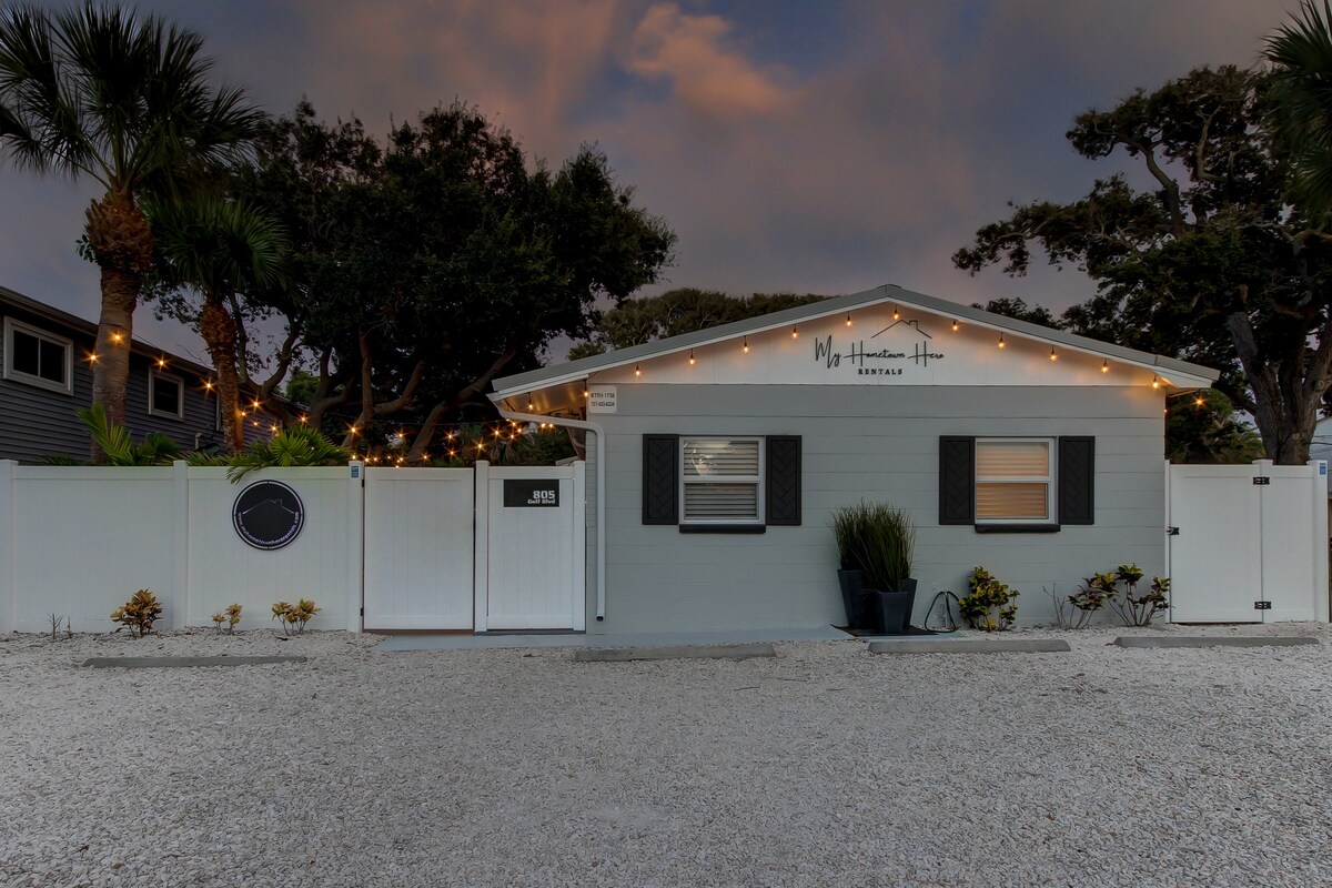 ¡Alquiler vacacional de playa de 2 dormitorios COMPLETAMENTE REMODELADO! ¡Ubicado a una manzana a pie por un camino bordeado de palmeras de las arenas azucaradas de Indian Rocks Beach y enfrente de un hermoso parque! En la parte trasera encontrarás una gran piscina CLIMATIZADA (¡actualmente a 90 °F!) con muchas tumbonas, mesas de comedor, una nueva parrilla Weber para barbacoa, chimenea, flotadores de piscina y mucho más. Para que tu viaje sea lo más sencillo posible, te proporcionamos todo lo que necesitas para la playa: toallas, sombrilla, sillas de playa y mucho más.