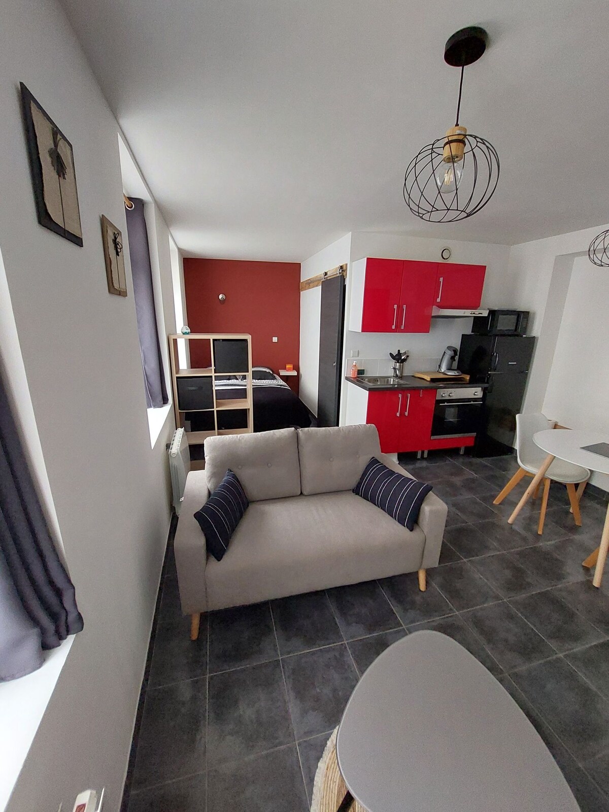 Studio récemment aménagé dans une dépendance d'un ancien corps de ferme de 1880. Situé à proximité de Lumbres et de l'A26, cet hébergement d'une capacité de deux personnes dispose d'un parking privé, borne de recharge (sur demande), chambre atypique, salon, coin cuisine (table, frigo, micro-onde, vaisselle), salle de bain ainsi qu'un institut de beauté et bien-être (Massage, soins,..) Les horaires d'arrivée et départ sont légèrement flexibles. Les arrivées et départs sont autonomes.