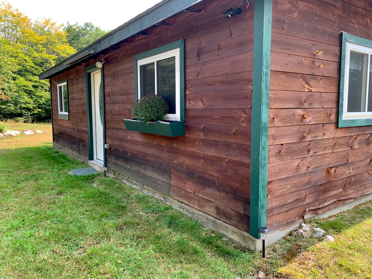 Relájate y recarga energías en nuestra hermosa cabaña enclavada en las montañas Adirondack en un pequeño parque de autocaravanas. Espacio de estilo estudio con un baño privado. Una cama queen size y 2 cunas están disponibles. Hay un pequeño espacio de cocina con fregadero, microondas, cafetera y mininevera. El baño incluye ducha de pie, inodoro y lavabo. Los huéspedes pueden disfrutar del espacio exterior que está equipado con una mesa de picnic y un pozo de fuego. Increíble vista del lago Chateaugay y los cielos nocturnos.