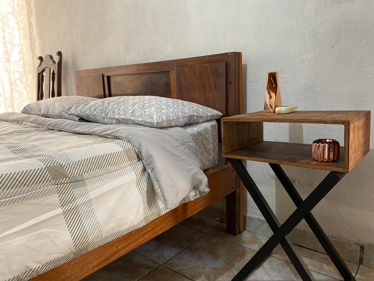 Espacio enfocado en la tranquilidad y descanso, pasa unos días increíbles de relax frente al jardín y a unos pasos de la alberca. Ideal para parejas, el espacio cuenta con una cama king size y un sofá cama para ya tercer persona o niños. Baño y cocineta equipada, terraza frente a la alberca sin subir escalones. Wifi, TV por cable. Goza de la tranquilidad y sonidos de la naturaleza en un estudio equipado para que pases un gran momento. A Dos cuadras de la playa y con una alberca única.
