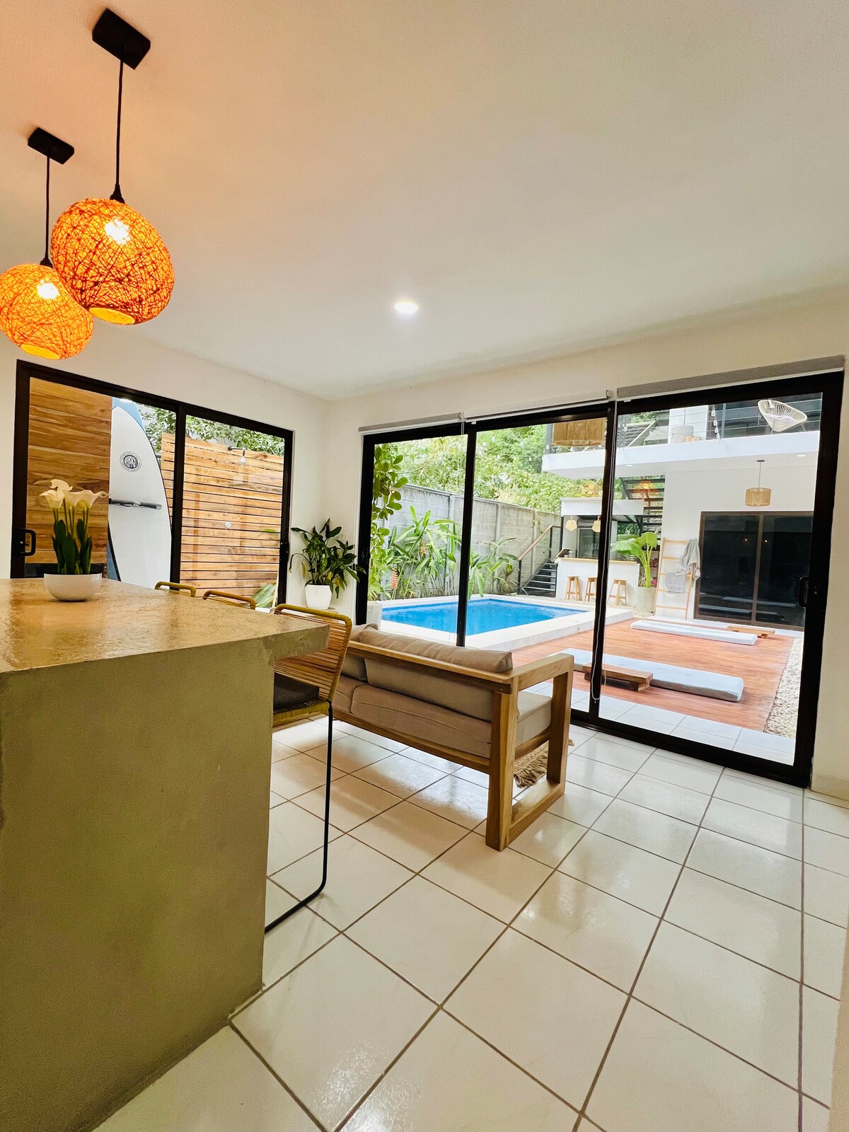 Hospédese en el corazón de Santa Teresa, a pocos pasos de la calle principal y a poca distancia a pie de la playa. Este luminoso y elegante estudio en el segundo piso ofrece un espacio cómodo y minimalista, ideal para parejas o viajeros solos. Disfrute de abundante luz natural, un diseño abierto y una posición ligeramente elevada que ofrece más privacidad y una brisa refrescante. Con cafés, restaurantes y lugares para practicar surf a la vuelta de la esquina. Vaya a todas partes caminando y disfrute de una estadía sencilla y cómoda. No necesita auto.