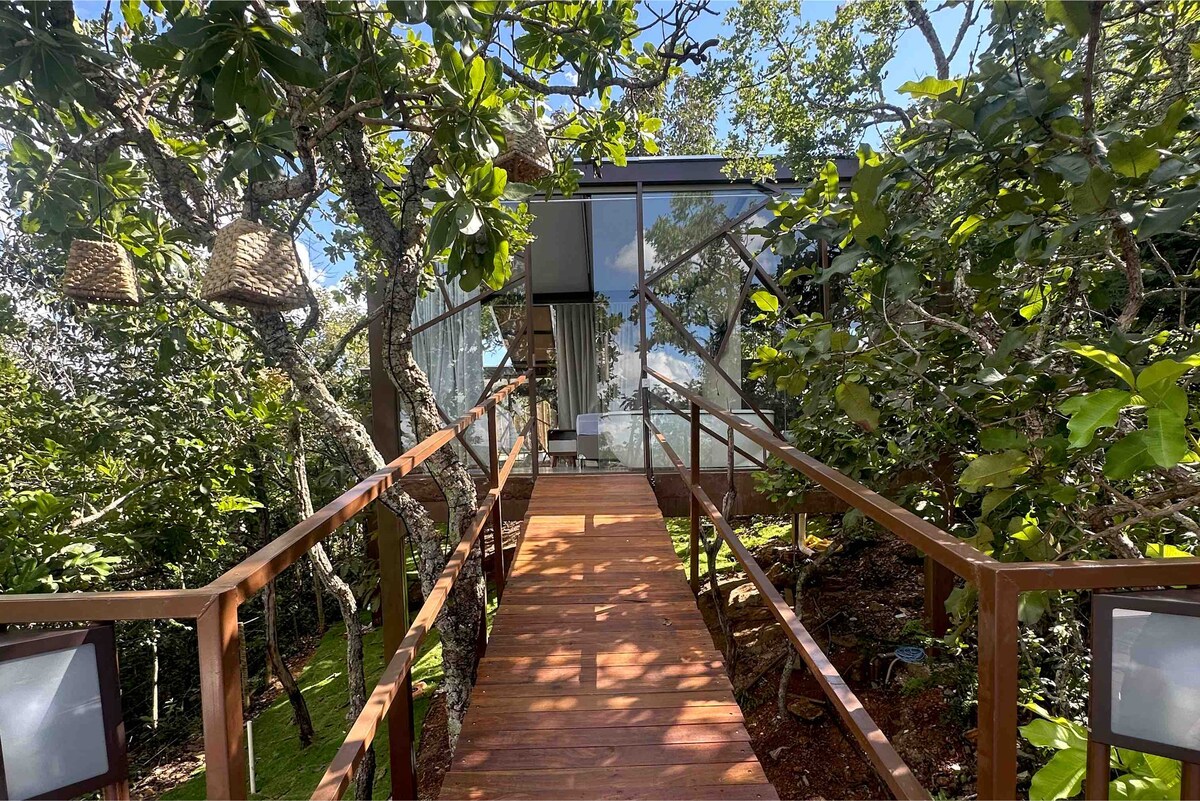 La casa de cristal se remonta a la nostalgia de la infancia de una casa a la altura de los árboles, con entornos separados y pasarelas elevadas, trae encanto y comodidad a una estancia inolvidable. La arquitectura moderna permite una inmersión inigualable con el cerrado alto, lo que permite una vista inigualable.
