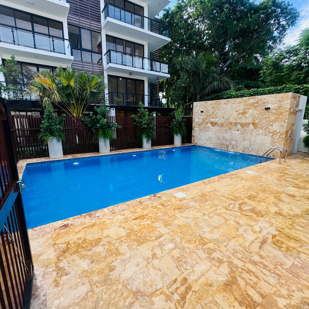 Nuestro apartamento está bien decorado con buen gusto y puede alojar cómodamente hasta 6 huéspedes. Está en un tercer piso, sin embargo, es fácilmente accesible por ascensor o escaleras. La unidad tiene una cocina totalmente equipada, baños de estilo moderno, TV inteligente plana de 50pulgadas con servicio de cable, WIFI gratuito y Netflix, aire acondicionado, lavadora y secadora y balcón privado con vistas a la piscina. ¡El balcón es ideal para tomar el café por la mañana y es para nosotros!
