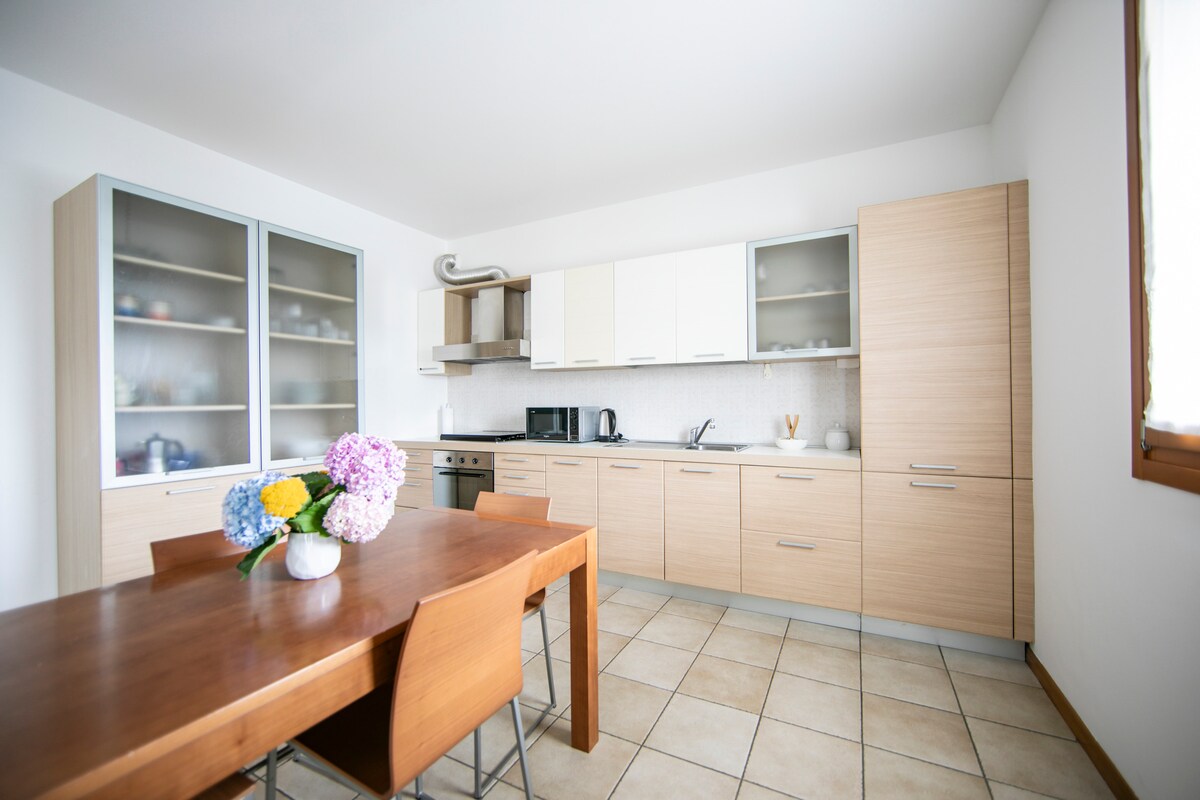 Situado a los pies de las colinas del DOCG Conegliano-Valdobbiadene, el apartamento en una zona residencial muy tranquila está a pocos pasos del centro de Col San Martino: supermercado, farmacia, quiosco, iglesia, pastelería, lavandería con monedas, parada de autobús se puede llegar a pie en cuestión de minutos. La ubicación le permite llegar tanto a las cumbres de los Dolomitas como a las costas adriáticas de Jesolo, Caorle, Bibione y Venecia en coche.