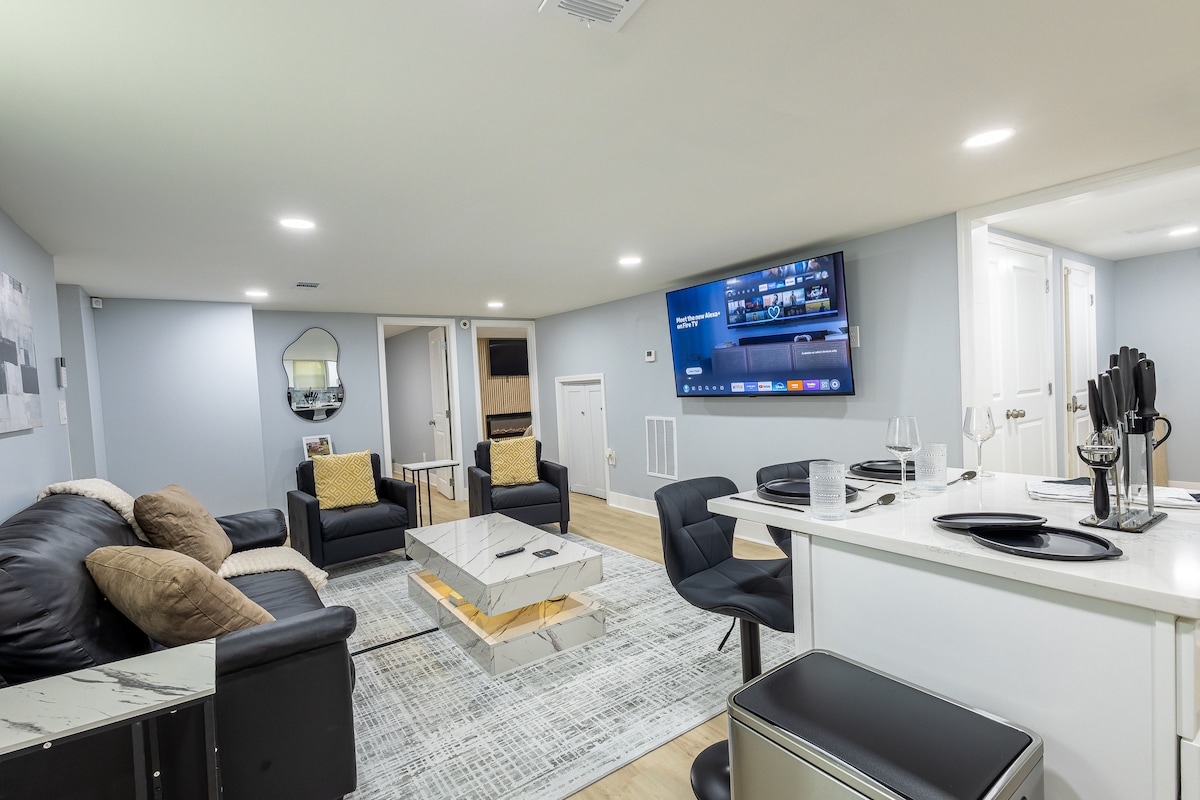 ¡Un apartamento sótano privado bellamente renovado y espacioso de 1 dormitorio/1 baño con entrada privada e independiente! El apartamento incluye electrodomésticos de cocina de acero inoxidable, wifi, un espacio de trabajo dedicado, dos televisores Fire de pantalla plana, lavadora y secadora y una chimenea eléctrica. Situado en un barrio residencial tranquilo, pero a solo 5 millas de la histórica plaza Marietta y a 5 millas del estadio Braves. ¡Disfruta de la paz y la tranquilidad sin dejar de estar cerca de la emoción del metro de Atlanta!