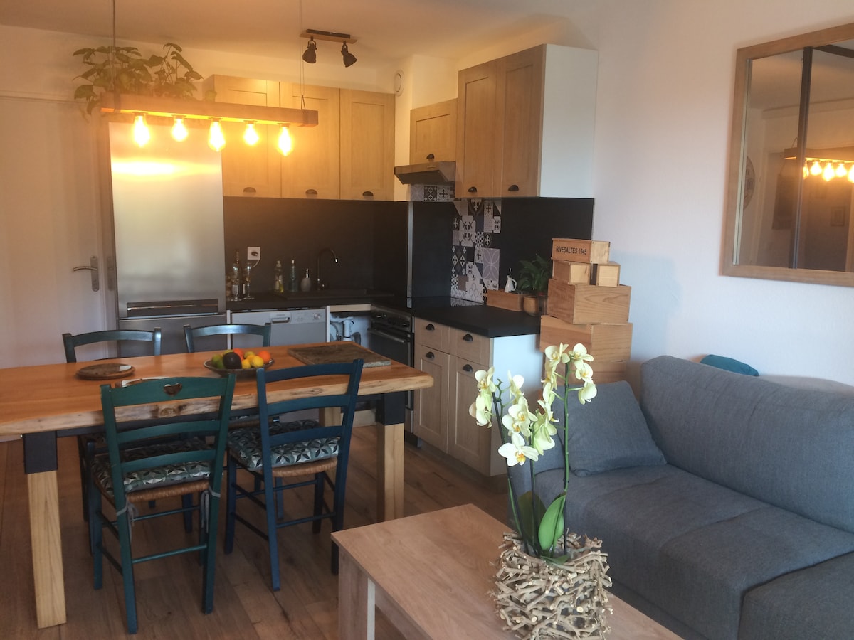 MIMI CHOU: Historic center: 2-room, very well-equipped apartment, 100 m from the beach, close to all amenities. - Numerous hiking trails - Guided tours of the Mouré. The Ouille cove, 30 minute walk away: restaurant, canoeing, kayaking - Air conditioning in the living room and bedroom, washing machine, dishwasher, freezer, TV, Wi-Fi - Quiet room (at the back of the house) - Parking 300/500 m away, access to all parking meters. - 10% off stays for 2 consecutive weeks or more