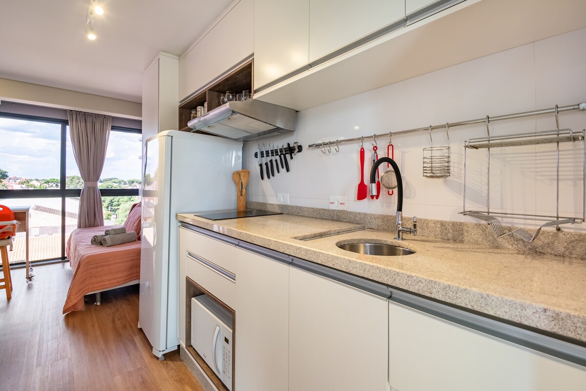 Estudio con servicios, balcón y excelente ubicación Cerca del parque Bacacheri, supermercados, panadería, farmacia y PUB Nuestro espacio se diseñó cuidadosamente para brindar comodidad y conveniencia a los huéspedes. PROPORCIONAMOS ROPA DE CAMA, TOALLAS Y JABÓN DE BAÑO LÍQUIDO. Además de la comodidad de la propiedad, los huéspedes pueden contar con lavandería las 24 horas en el condominio y una vista impresionante de la ciudad desde la terraza. Espacio totalmente seguro con portero Garaje cubierto.