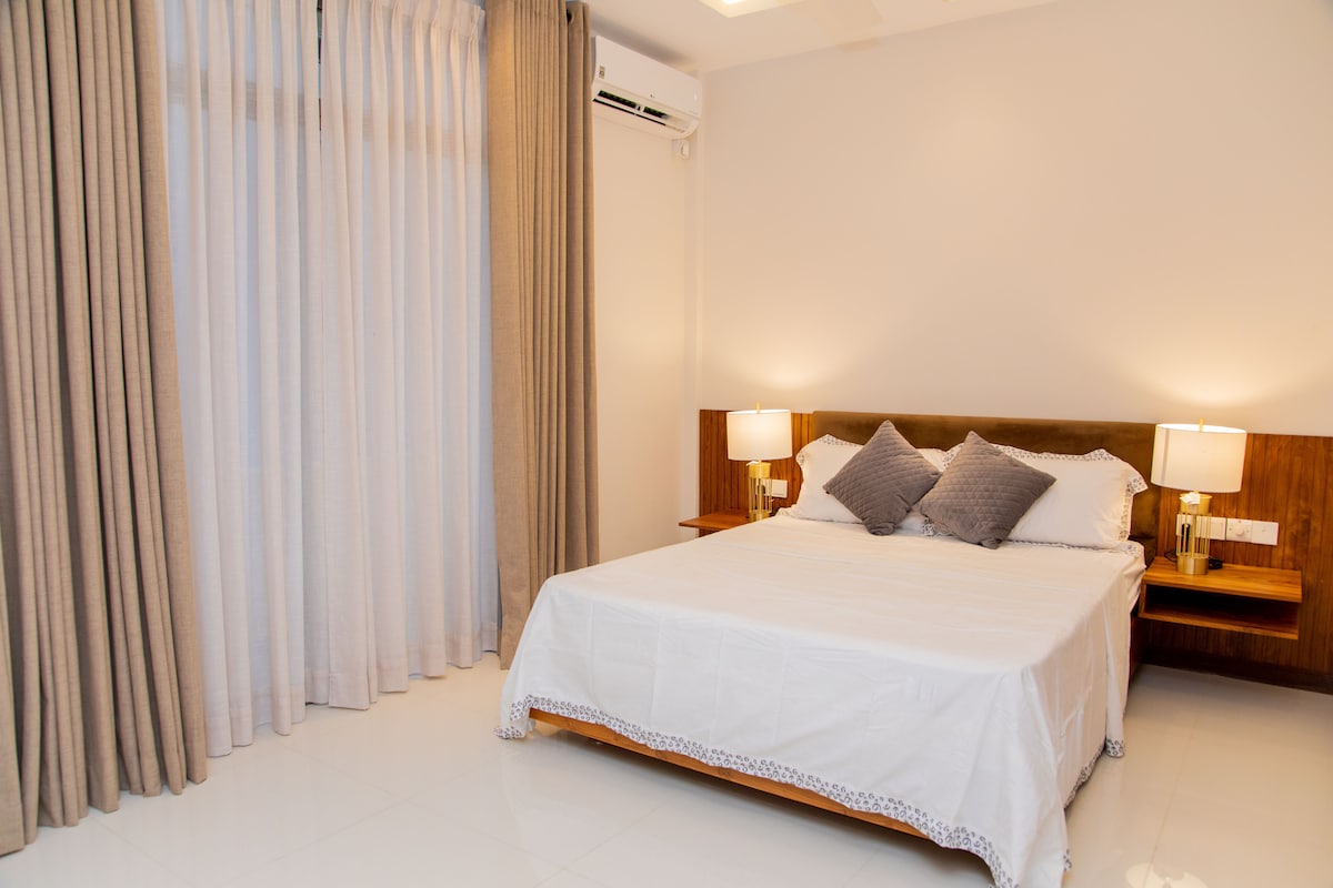 Relax with the whole family at this peaceful place to stay. Comfortable two bedrooms with fully airconditioned. Main Bedroom is with attached Bathroom. Dining/living area. Exclusive ( non shared ) kitchen unit with Gas hob and oven , Separate fridge freezer fell yourself Home away Home. Both bedrooms are with balconies. Ideal Home for a family. Closes to Parliament situated within high security zone. Major supermarkets are nearby.