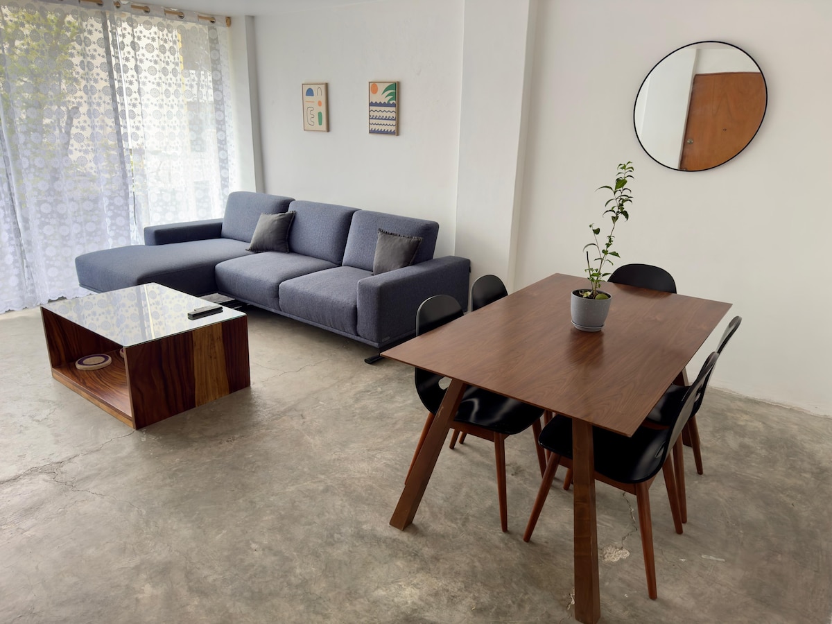 Experience trendy Nápoles, just steps from the WTC and Pepsi Center, a quick 7-minute drive to Condesa and Roma, and just 7 mi (11 km) from Benito Juárez International Airport (MEX), GNP Stadium, and the thrilling Formula 1 Grand Prix. This elegant two-level apartment features a private balcony, a comfortable queen bed, a double sofa bed, a 60” Smart TV, a fully equipped kitchen, and high-speed WiFi. Book now to enjoy sophisticated comfort in Mexico City’s prime location.