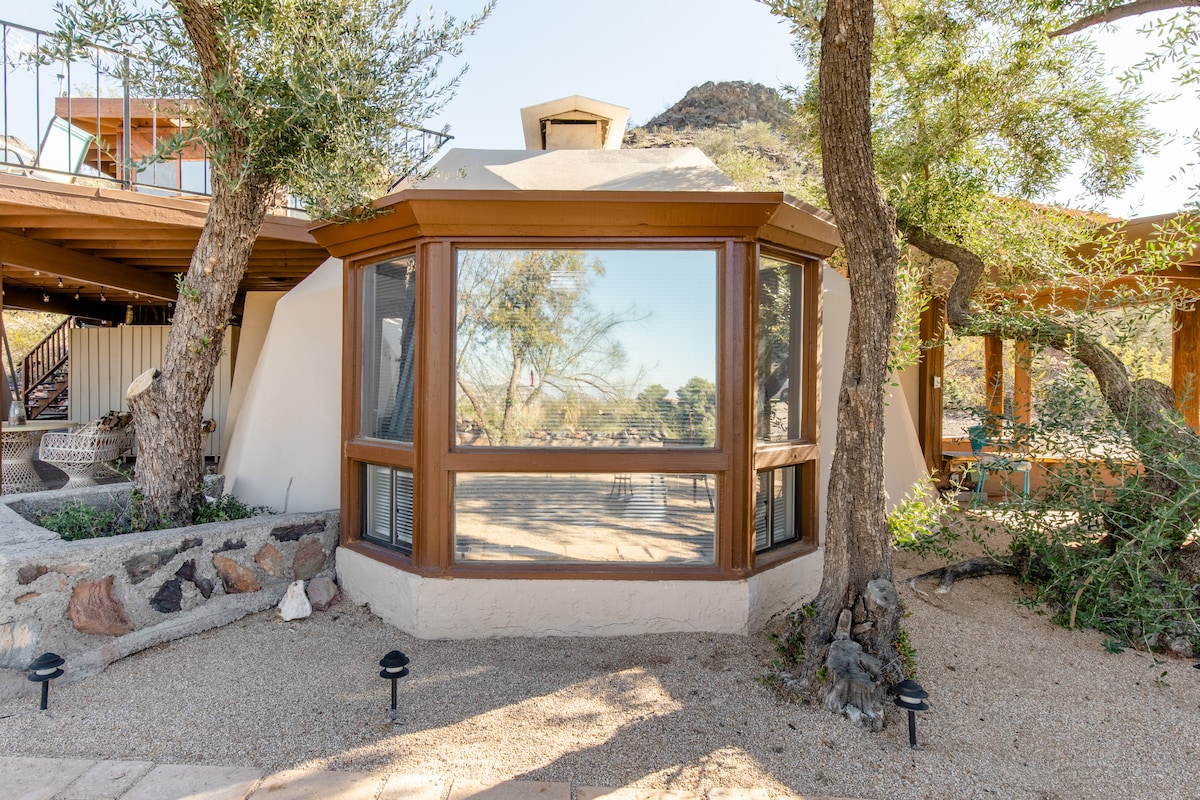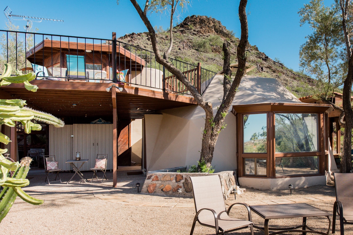 Disfruta de vistas que se extienden hasta las montañas desde la enorme terraza de este increíble espacio, que una vez apareció en Life Magazine. Aquí se ofrece una de sus 2 cúpulas, que consta de un único espacio enorme con un ambiente fresco y moderno. Nuestra propiedad consta de dos cúpulas y una torre, y este anuncio es para una de las cúpulas. Es completamente independiente y privado. La disposición para dormir es una cama tamaño queen que se levanta hacia la pared cuando no está en uso. Es muy cómoda, con un colchón tamaño queen normal. La habitación también cuenta con un sofá, ¡ideal para disfrutar de la vista! La cocina incluye una estufa eléctrica, nevera de tamaño completo, fregadero y microondas. Tu cúpula es un apartamento privado independiente. Los terrenos son compartidos y en el centro hay una lavadora y secadora compartidas. Hacia la parte trasera de la propiedad hay una escalera que conduce al mirador, otro espacio compartido. Este espacio colinda con el dormitorio de la torre, así que si alguien está durmiendo allí, sé respetuoso. Hay un límite de no más de 10 personas en la terraza. Haré todo lo que esté en mi mano para registrarte y mostrarte la propiedad, y es posible que pasemos por allí de vez en cuando. Salga del sendero a pocos minutos de distancia, con espectaculares rutas de senderismo y ciclismo de montaña disponibles en muchas direcciones. Phoenix Mountain Preserve está a poca distancia a pie, con tiendas de comida y restaurantes a poca distancia en coche y clubes de golf no mucho más lejos. Debido a la ubicación inusual, tenemos cámaras de seguridad para tu seguridad. También hay una cámara web en el techo que puedes ver en http://www.PatrickHarvey.com/Domes