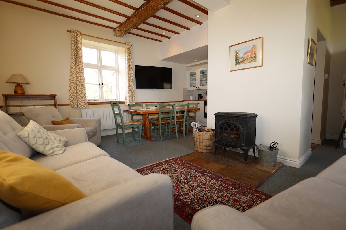 El acogedor cobertizo para carros es un refugio perfecto para parejas o amigos que buscan relajarse en la campiña de Norfolk. Situado en el pueblo de Buxton, en un entorno fuera de la carretera en una pintoresca granja en funcionamiento. El cobertizo para carretas está situado cerca de los lugares donde se celebran las bodas, Hautbois Hall y Oxnead Hall (que tiene una ruta directa a pie desde la casa de invitados). El pueblo de Buxton está situado a orillas del río Bure, un lugar perfecto para pescar, hacer piragüismo, surf de remo, pasear a los perros y observar la fauna local.