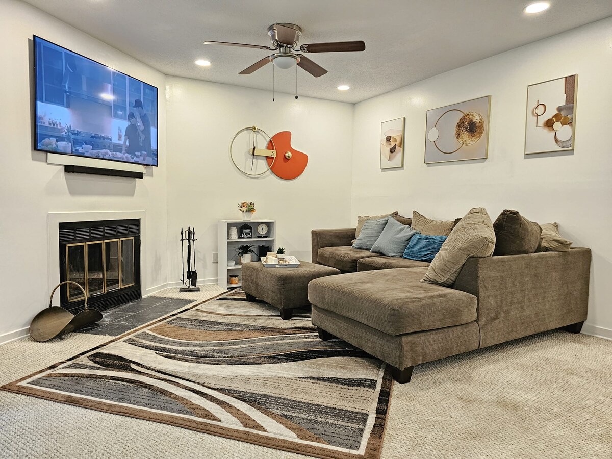 Apartamento de planta baja recién renovado, 2 dormitorios, capacidad para 6 personas cómodamente con 2 camas tamaño king/1 cama tamaño queen, 1 baño (sistema de agua caliente sin tanque), entrada privada y acceso sin llave, mucho espacio de estacionamiento para 3 coches. Cocina completa con café, desayunos fáciles, palomitas de maíz, lavadora/secadora, sábanas, toallas. ¡Una fogata privada para hacer smores! ¡Cerca de todo! A 4 millas del centro de la ciudad. Este es un barrio familiar tranquilo... ¡NO se permite fumar en el alojamiento, NO se admiten mascotas y NO se permiten fiestas!