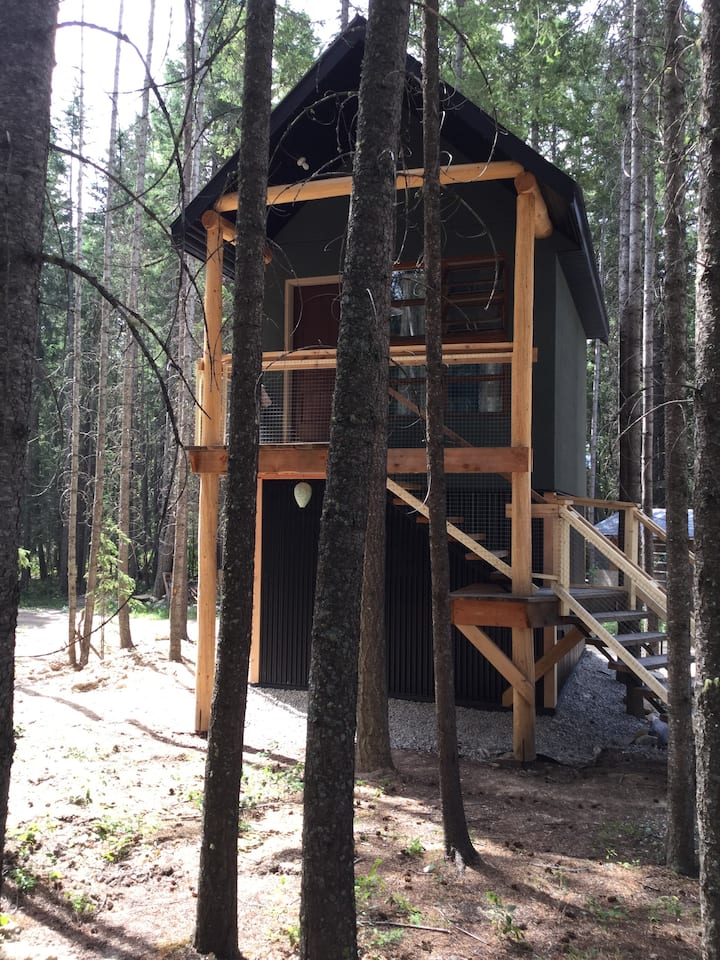 TRINEEROS, ESQUIADORES, SENDERISTAS. Esta ubicación está situada entre los árboles en una propiedad rural a 10 minutos de la ciudad. La Casa de los Pájaros está construida en los árboles, en la ladera de la montaña Moberly. Forma parte de Trail View Lodging con otras 2 casas en la propiedad. Construida para mantener la privacidad y el espacio al aire libre. Cruza la carretera para hacer senderismo, ciclismo, esquí o motonieve en la red de senderos FSR. Casa privada con cocina completa y lavavajillas. Escalera personalizada o escaleras exteriores al dormitorio con acogedora chimenea de gas. Amplio estacionamiento para remolques.