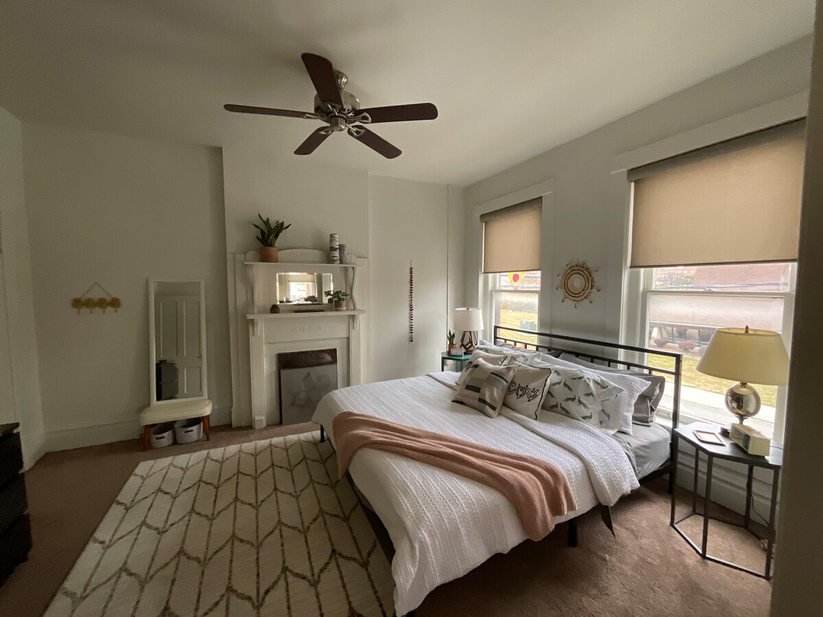 1ª planta 1 dormitorio, 1 baño Casa de huéspedes independiente PRIVADA (NO compartida) completamente amueblada, con cocina y lujoso dormitorio tamaño king. Aparcamiento cercado fuera de la vía pública. Los anfitriones viven al lado y trabajan desde casa. En el histórico Olde Towne East. La zona es urbana, así que espera ver y escuchar las vistas y los sonidos de la vida en la ciudad. Aproximadamente a 1 milla del centro de la ciudad y del Centro de Convenciones, a 1 milla del Franklin Park Conservatory, a 5 millas de la Universidad Estatal de Ohio o del Aeropuerto Internacional John Glenn (a unos 11 minutos en coche).