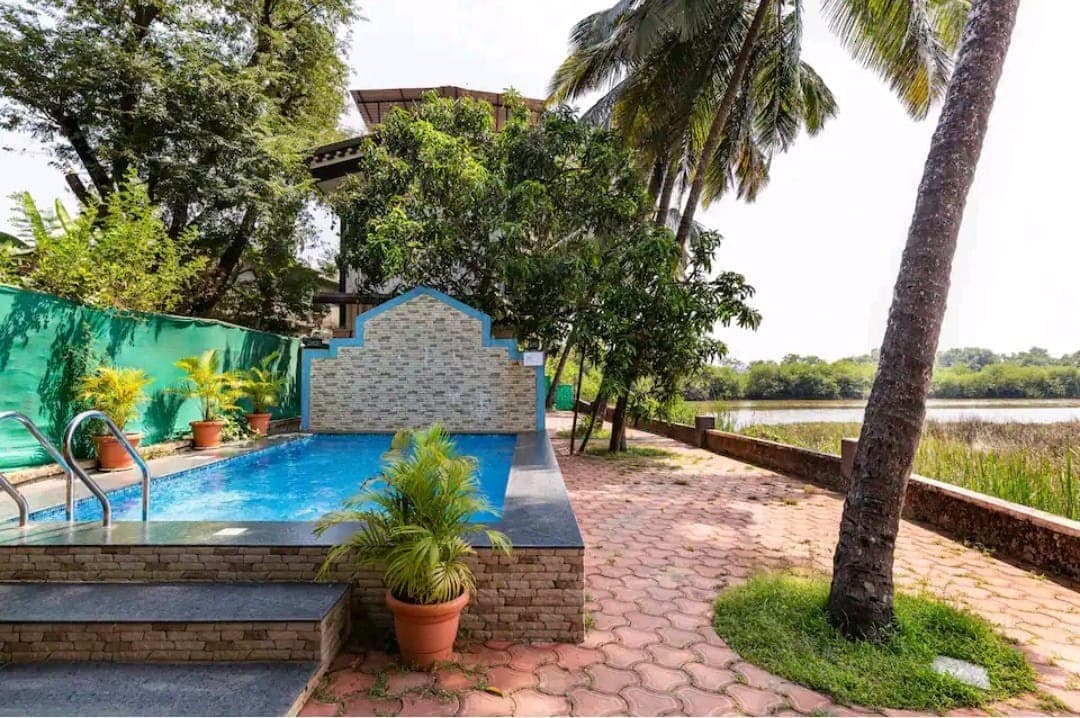 Navin 's Vista Azul es una propiedad de estilo griego moderno de 8073 pies cuadrados con 4 suites ubicada en medio de la exuberante vegetación y la vida local del pueblo en el sur de Goa. Esto te permite experimentar la verdadera esencia de la cultura goana junto con privacidad y otros servicios como una piscina y una zona de reunión al aire libre. Situada en Nuvem, en el sur de Goa, a solo 10 minutos de la playa y a 15 minutos de la ciudad principal, esta propiedad es una mezcla perfecta de una estancia tranquila pero atractiva.