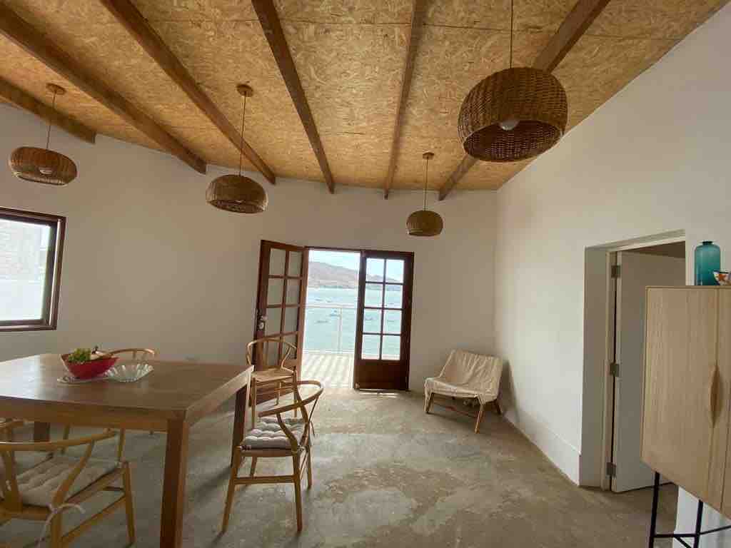 Apartamento en casa de Playa, Frente al Mar con Terraza Panorámica Disfruta de una experiencia única en este acogedor apartamento en segundo piso, ubicado en una exclusiva playa privada. Relájate con el sonido de las olas y vistas espectaculares de la bahía desde la terraza-balcón. El espacio cuenta con una amplia sala-comedor, cocina totalmente equipada, pérgola y una zona de parrilla ideal para compartir momentos inolvidables frente al mar. ¡Tu escapada perfecta te espera! 🌊☀️