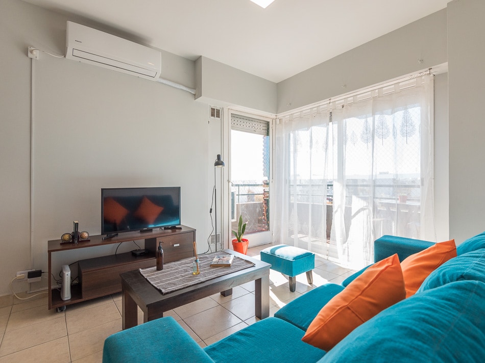 Amplio y luminoso departamento para 4 huéspedes equipado con losa radiante y aire acondicionado frío/calor en living y dormitorio. Dispone de cochera fija en el subsuelo, gimnasio y pileta en temporada. Con una ubicación inmejorable, se encuentra a pasos de la zona comercial y gastronómica de Boedo, aparte de situarse a 500m de la línea E de subte.