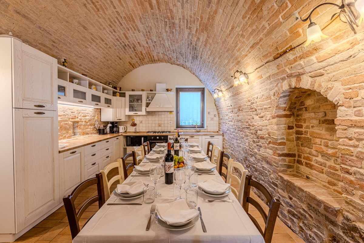 Casa de campo que ofrece momentos de tranquilidad en un ambiente sereno, producimos vino DOC y aceite de oliva virgen extra. Las Marcas están llenas de maravillas que nos regala la Madre Naturaleza: el mar, las montañas, los valles salpicados de ríos, las gargantas y los pasos naturales de los Apeninos, o construidos por la sabiduría de artistas de renombre. Pero las obras creadas por la sencilla mano del agricultor no desfiguran el paisaje que se abre ante tus ojos. «...que el paseo sea ligero para ti, viajero, y el corazón, ligero».