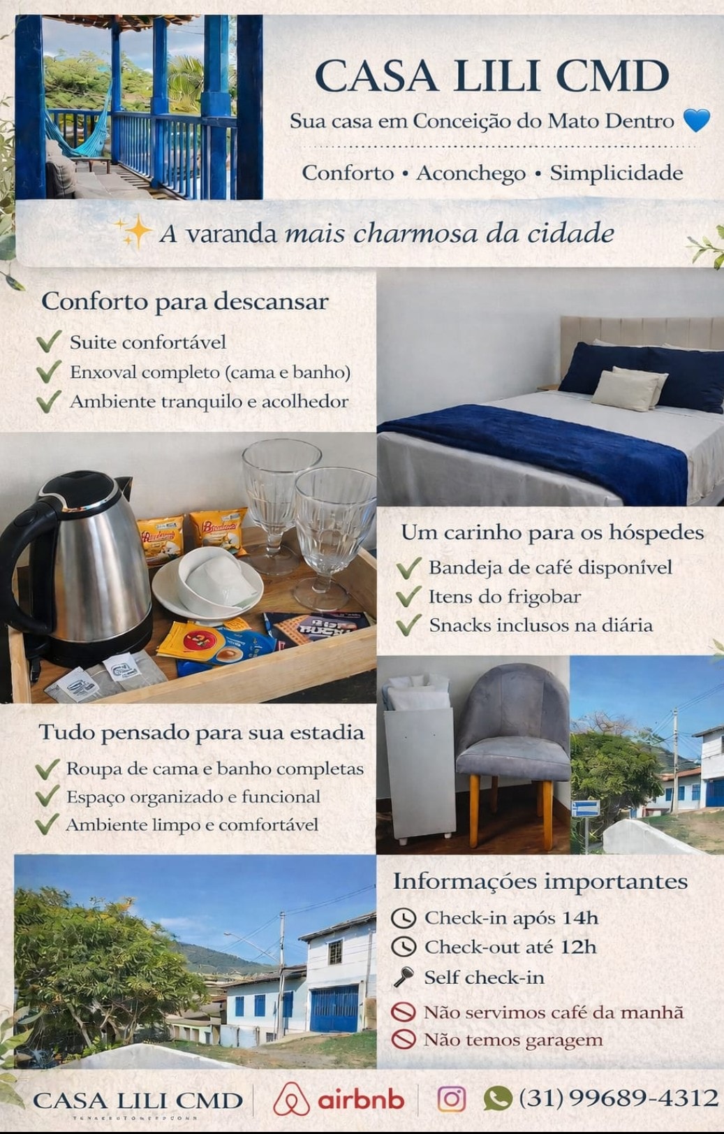 Hospede-se no coração de Tabuleiro! 🏡 💛 Casa aconchegante no centro do distrito, a 20 min de Conceição do Mato Dentro, perto de padaria, igreja, praça, rios e da Cachoeira do Tabuleiro. Quartos com ventiladores e fornecemos roupa de cama. Cozinha equipada com fogão, geladeira, liquidificador, sanduicheira, airfryer e utensílios. Ideal para descansar e explorar a região. ✨🏞️
