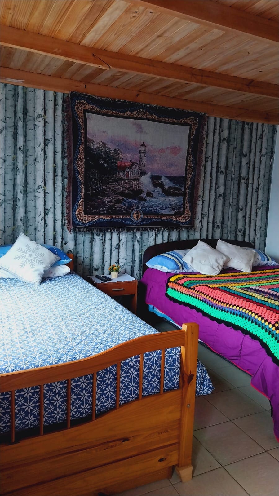 Hermosa Cabaña cerca de la ciudad para dos o mas personas, completamente amoblada y equipada, tiene jardín, estacionamiento y patio, perfecto para una familia o pareja, cerca de dos hermosas lagunas, áreas verdes y muchos lugares turísticos, playas,