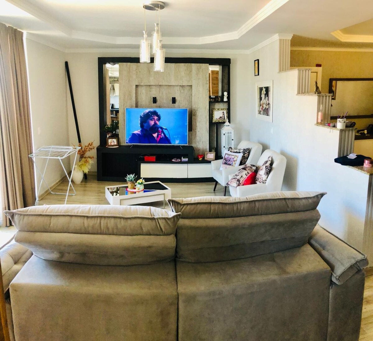 Vivencie Apartamento privativo de 144m2 e Desconta duração. Promessa entrada 14h adiante, Saída 9h, consulte data/hora. Wifi roupa de cama 2 banheiros No AP 3 quartos. *Cozinha fogão, gás geladeira com freezer 2 mesas *Sala sofá retrátil tv smart 55' blackout Reserve garagem, ventilador, colchão, cama casal + 2 cama Queen + cama solteiro+ colchões opção pagar adicional para ar na sala em airbnb.com/h/grandeap 🪜Escada 1° andar
