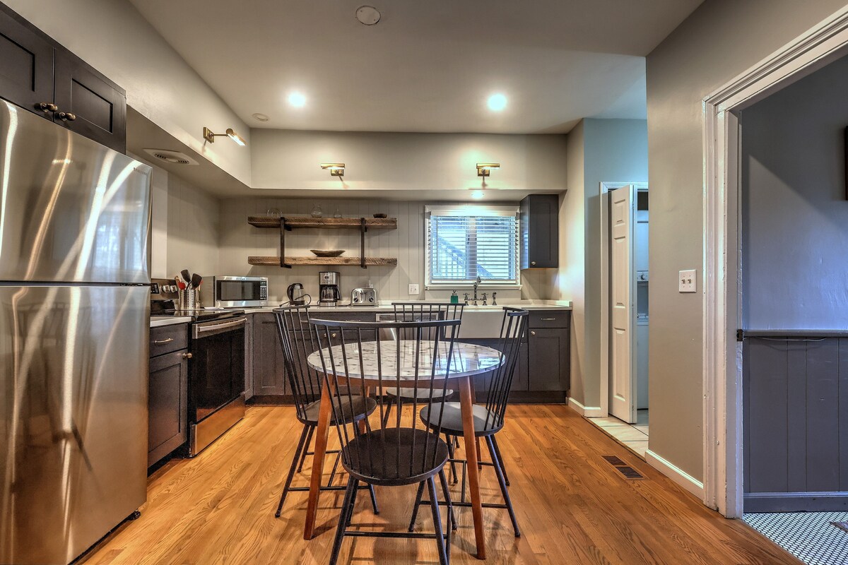 ¡Ven a alojarte con nosotros en nuestra histórica granja en funcionamiento! Relájate en la cubierta trasera y disfruta de las vistas de nuestra propiedad de 12 acres y pastos tranquilos. Para una experiencia más práctica, únete a nosotros en un recorrido para ver más de cerca la vida en la granja. Fundada en 1739, nuestra granja tiene una rica historia en la agricultura y la ganadería. La acogedora cabaña de estilo estudio cuenta con un espacio de estar abierto con dormitorio, sala de estar y comedor combinados, junto con una cocina pequeña y un baño con ducha para tu comodidad y conveniencia.