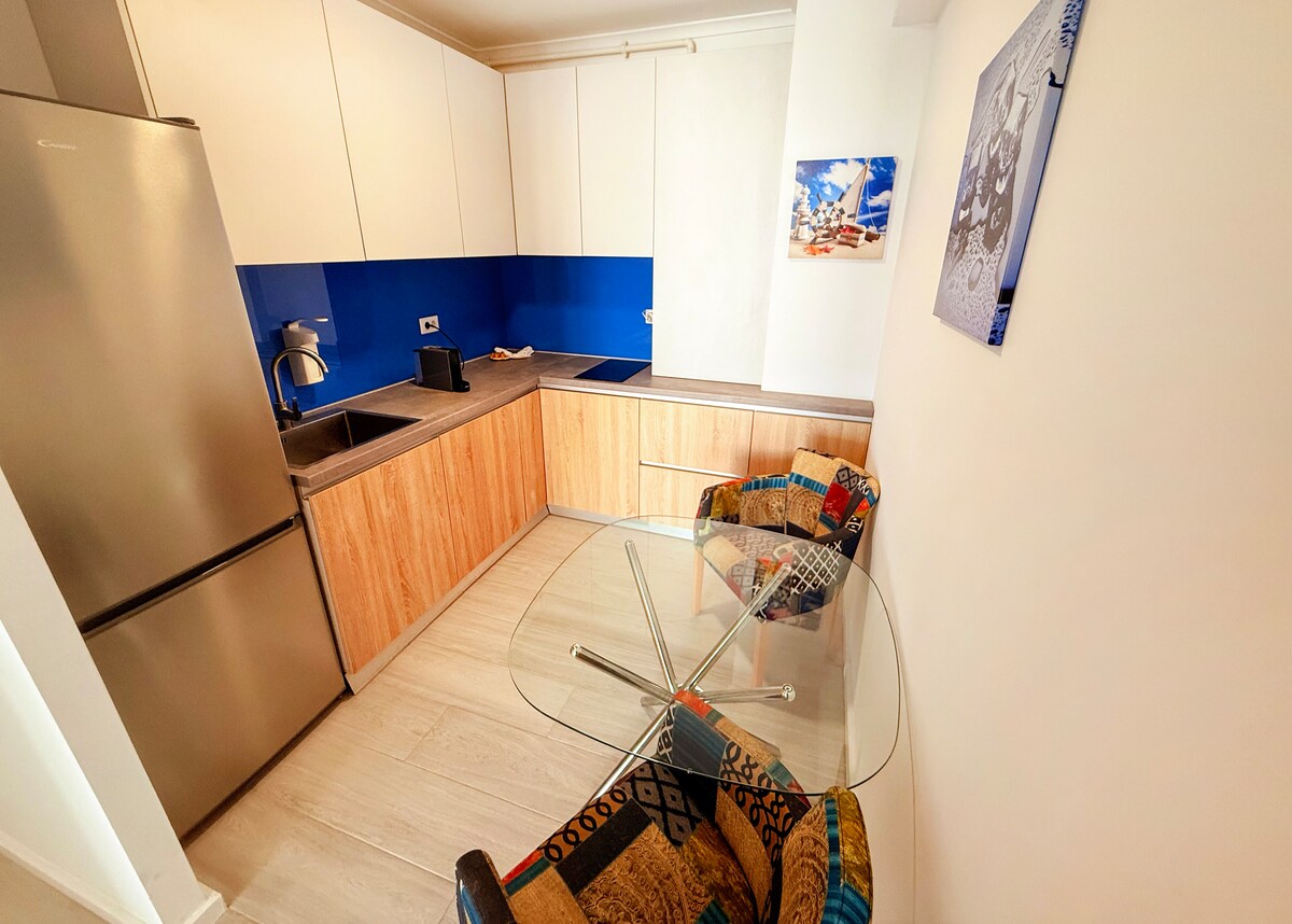 Spacious apartment over 80 m² with side sea view, two bedrooms, and two modern bathrooms with showers, ideal for 4 guests. It offers privacy and is the perfect choice for families or groups seeking modern amenities. The bedrooms are designed for rest and comfort: one features a double bed, while the other has a double bed and a sofa bed. Additionally, the apartment provides a fully equipped kitchen with a dining area. Free Wi-Fi.