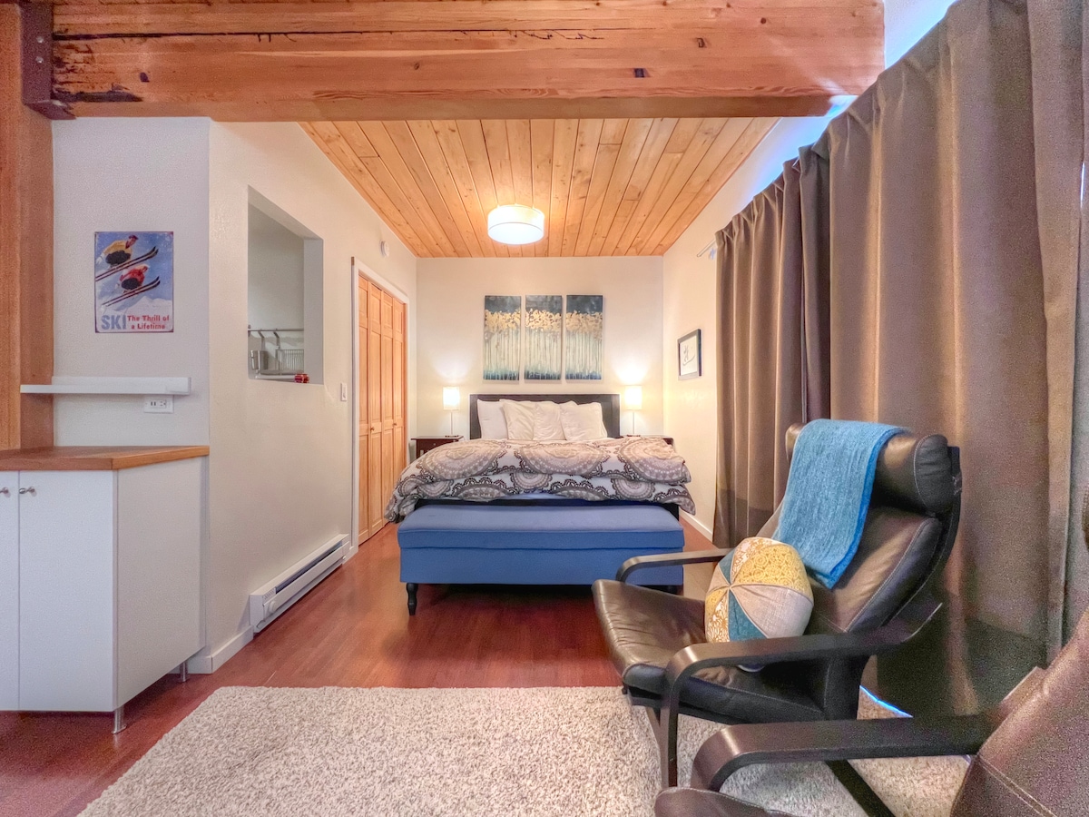 Mountain Hideout es un acogedor 1bd con fácil acceso al jacuzzi y al servicio de traslado de esquí, ¡ambos justo afuera de tu puerta! Esta cómoda y tranquila escapada a la montaña tiene una cocina de tamaño completo con estufa, horno, refrigerador y utensilios de cocina. Si prefieres comer fuera, simplemente da un paseo de 5 minutos hasta el área base o súbete al servicio de traslado gratuito. La sala de estar tiene un sofá cama para alojar a un tercer huésped. ¡Se proporciona un espacio de almacenamiento separado para esquís, bicicletas y otras pertenencias! ¡Una gran ventaja! No se admiten mascotas.