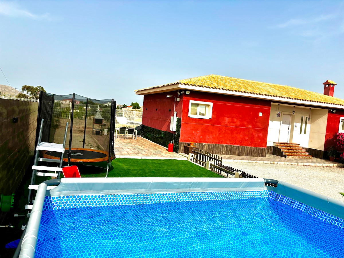 Casa refugio con piscina privada, ubicada al lado de las rutas senderisticas y puntos de escalada de Cabezó de Or y Cuevas de Canelobre. Se puede disfrutar de la tranquilidad, plena naturaleza y vistas panoramicas al mar y montaña a la vez . Ideal para pasar fin de semana haciendo deporte o para descansar. Sitio ideal para hacer barbacoa en entorno privado. A penas 12-15 km de la playa de Campello y San Juan Alicante. Casa se encuenta dentro de la finca de nuestra propiedad.
