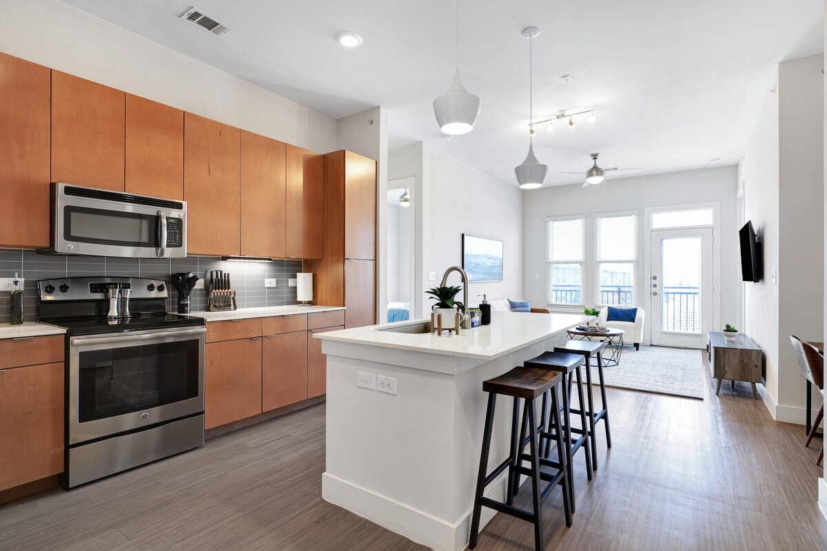 ¡Aparcamiento🚨 gratuito! Estás a solo: A ⭐️ 0,6 millas del Centro de Convenciones Henry B: 14 minutos a pie A ⭐️ 0,4 millas de la Torre de las Américas, a 9 minutos a pie. A ⭐️ 0,5 millas del Alamodome, a 11 minutos a pie. A ⭐️ 0,9 millas del Álamo, a 20 minutos a pie. A ⭐️ 0,6 millas del Paseo del Río: 14 minutos a pie ¡Bienvenido a tu hogar lejos de casa! Nuestro elegante y espacioso apartamento de 2 dormitorios y 2 baños está situado en el centro de SA. Disfruta de impresionantes vistas desde la comodidad de tu salón, cocina y dormitorios. ¡Reserva ahora y crea recuerdos duraderos!