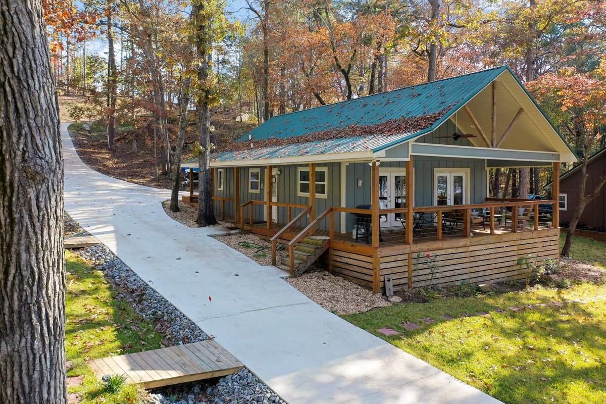 Stay steps from The Landing restaurant in this modern lakefront treehouse, perfect for family fun or a cozy couples’ getaway. Enjoy kayaks, mini golf, arcade games, a playground, and a firepit for starry nights. Surrounded by trees with panoramic lake views, you’ll feel both secluded and connected. Lounge on the wraparound porch, watch sunsets over the water, and embrace nature. Inside, enjoy a full kitchen, washer & dryer, and thoughtfully designed interiors that balance beauty and function.