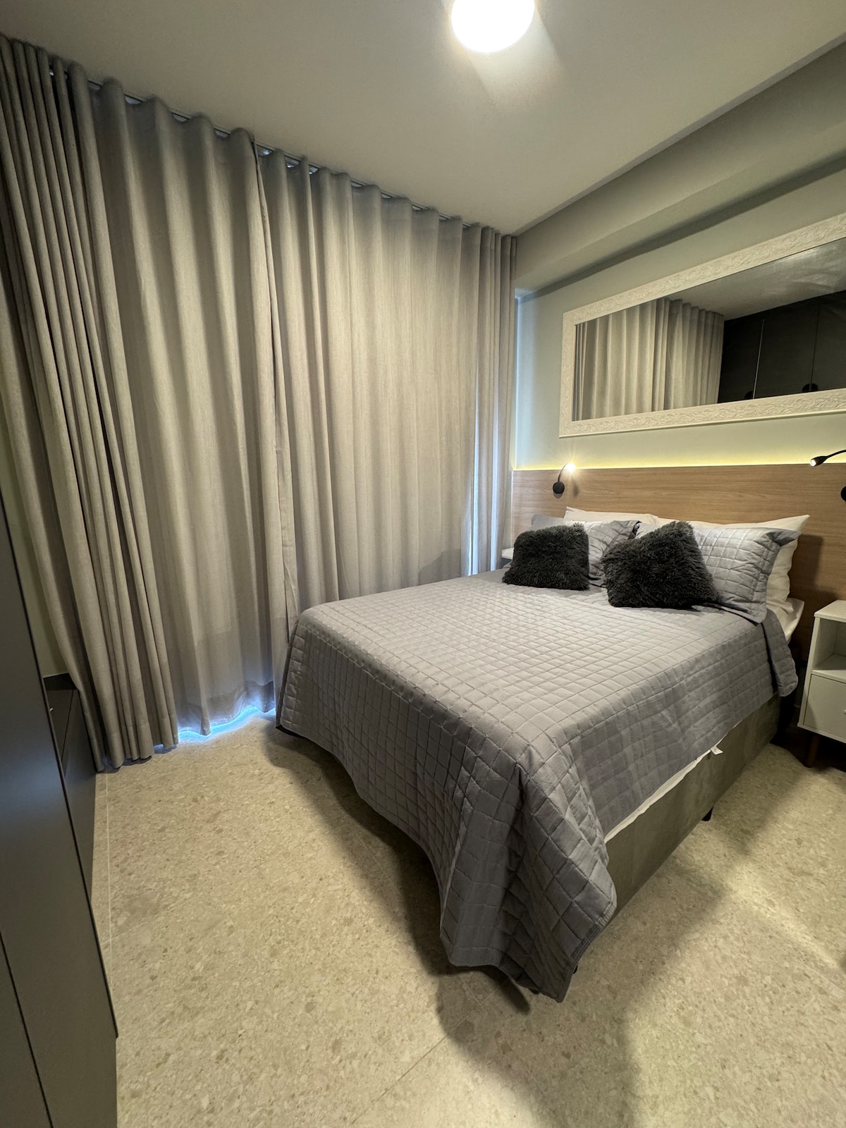 Experience One Eleven in Vila Olimpia. This modern apartment features large windows with breathtaking city views and natural light. The unit boasts 600 Mbps internet and a 4K HD TV. For total comfort, it has a Hot/Cold AC system: 27,000 BTU/h unit in the living room and 10,000 BTU/h in the bedroom. The bedroom is quiet and dark for a restful sleep. Impeccably maintained, you’ll be walking distance to top restaurants and business hubs—a safe, upscale retreat with a stunning urban backdrop.
