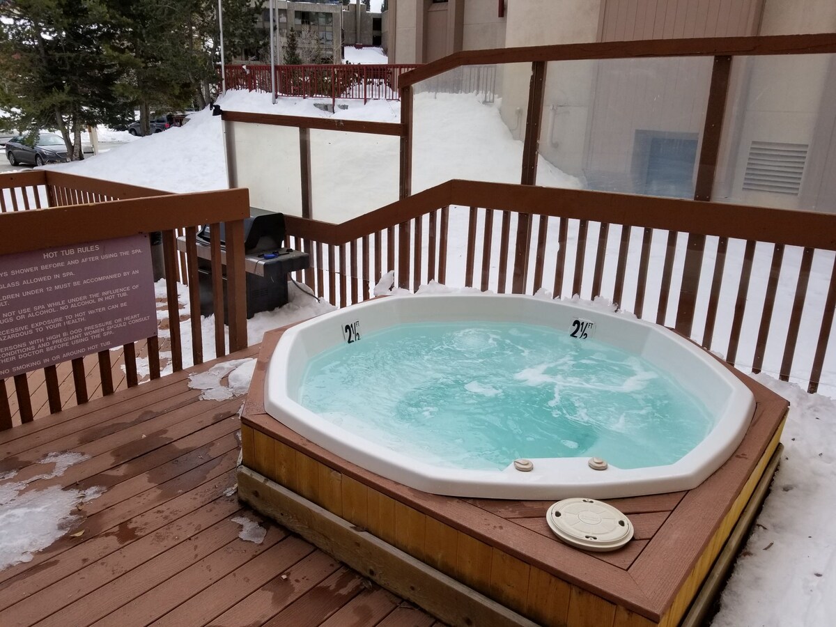 Experimenta la máxima relajación en nuestro espacioso apartamento recién reformado con acceso a las pistas de esquí en Copper Mountain. A solo 5 minutos a pie de las pistas, ¡maximizarás tu tiempo en la montaña! Relájate en el jacuzzi y la sauna comunitarios y disfruta de la comodidad de los restaurantes en el mismo edificio. Ubicado en el centro de la localidad de Copper, estarás a solo unos pasos de todos los restaurantes y tiendas que Copper tiene para ofrecer. Duerme y despierta con los relajantes sonidos de 10 Mile Creek justo fuera de tu balcón.