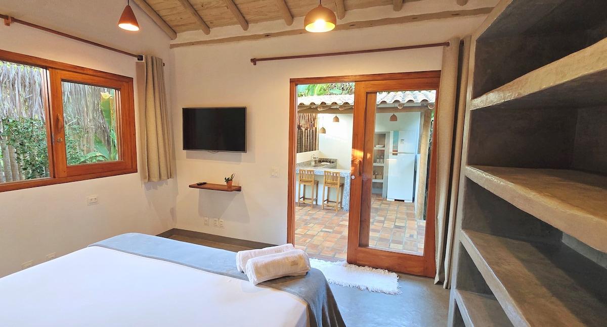 ¡Te damos la bienvenida a Vila Dengo Trancoso! Nuestro espacio fue cuidadosamente diseñado para ser práctico y acogedor. Estamos a solo 900 metros de Quadrado y a 1 km de las playas más cercanas, Praia dos Nativos y Praia dos Coqueiros. El loft tiene una cocina equipada, un dormitorio bien ventilado con aire acondicionado, una cama doble y una mesa de comedor. Además, tiene dos balcones: uno con una hamaca y el otro con dos sillas y una mesa, perfecto para relajarse. @viladengotrancoso