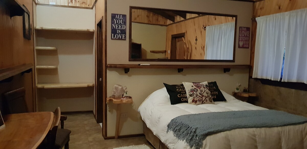 – Cama 2 plazas. – 1 Baño, Ducha y Lavamanos. – Estufa TOYOTOMI de tiro forzado. Dimensión Aproximada Habitación: 15 M2